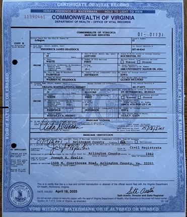 Oksana and Frederick "Rick" Shaddock